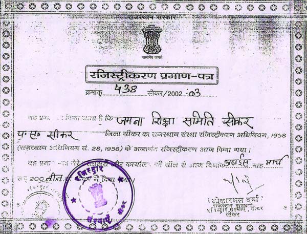 Jamna Girls B.Ed. College is organised by Jamna Shiksha Samiti, Sikar. This Society was established on 2002-03, with a pious objective of Educational, Social & Economical development of Women. Jamna Girls B.Ed. College is proposed to be established only for women by this Society.